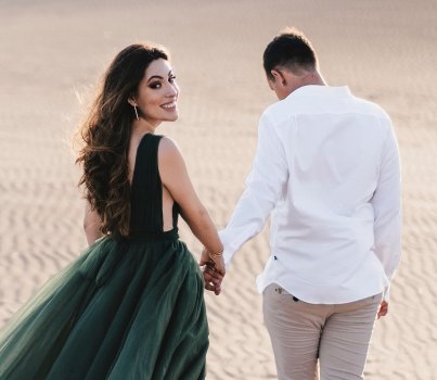 We met on a beautiful day at a mutual friend's wedding. Our eyes met, and the rest is history. We danced the night away and exchanged phone numbers. Love blossomed. Our first date was magical, and we knew it was fate.